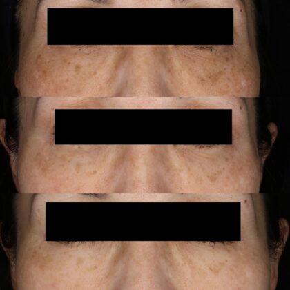 上が施術前、中央が半年後(ACRS 1回終了後)、下が1年半後(ACRS 2回終了後)です。