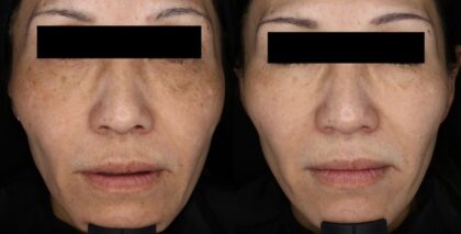 目の下の小じわが改善、しみや肝斑もかなり薄くなり、お肌が全体的に若くなっています。(この間、美白のことを含め何もしていないので、純粋にACRS単独の効果です。)