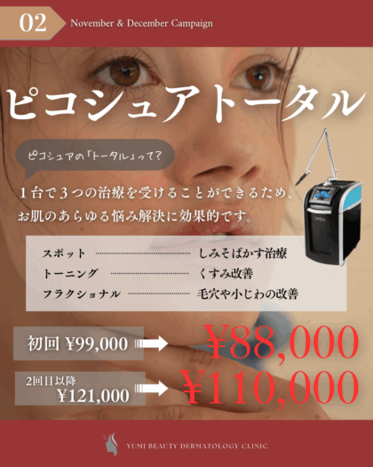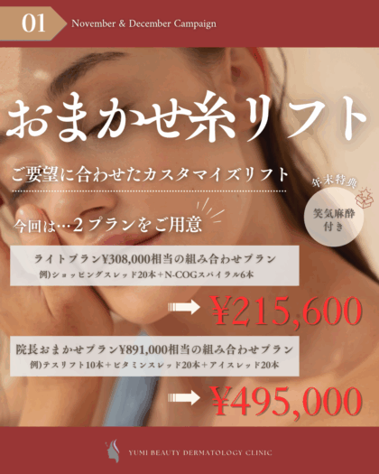 ゆみ美容皮膚科クリニックでは、年末に向けておすすめの、スペシャルなキャンペーンをご用意しました。