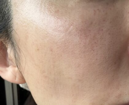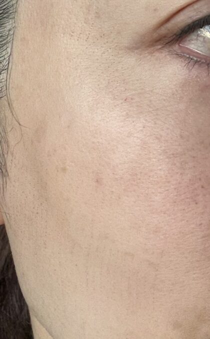 針刺して高周波流して肌育製剤も注入するっていうと、めちゃくちゃ顔赤くなって腫れが長引くんじゃないか?って思われる方も多いと思いますが、私の感想としてはぜんぜんそんなことないですね。翌日からメイクしたら人からは気付かれることはまずないと思います。これ、翌日の朝です。