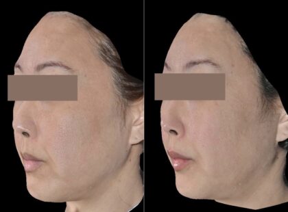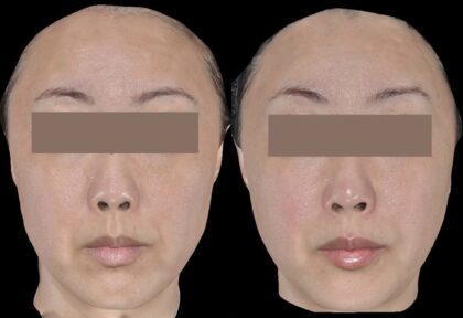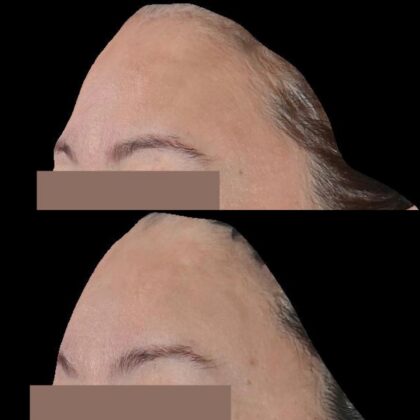 施術3ヶ月後には、眉上の凹みがなだらかに改善し、 丸みのある自然な額の形へと変化しています。 同時に額の横ジワも浅くなり、全体的にやわらかく若々しい印象となりました。